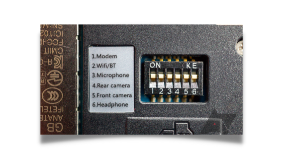 Photo of PinePhone DIP switches inside the back cover